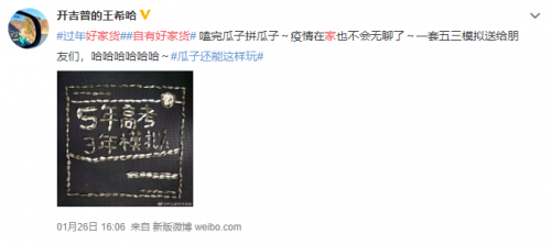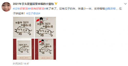 原来今年京东年货节期间,京东自有品牌惠寻联合手工博主@魏泽楷共同发起“自有好家货,请你嗑瓜子”活动,用瓜子拼图为自己喜欢的事物应援,吸引了各路网友纷纷献上自己的奇思妙想和手工“十八般武艺”。