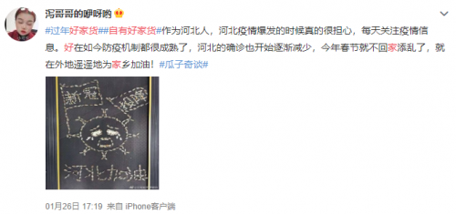 冬将尽,春可期,这是所有人对新春的期盼。有网友用瓜子拼“新冠投降”图,为河北加油,为抗疫英雄应援。