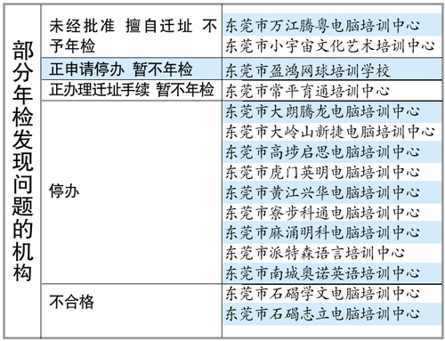 东莞市教育局发布民办教育培训机构年检名单