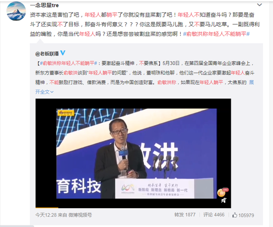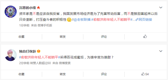 5月30日,#俞敏洪称年轻人不能躺平#登上微博热搜,网友表示,如果年轻人都躺平了资本家就没有韭菜割了。更有网友引用古文,发出“采得百花成蜜后,为谁辛苦为谁甜”的灵魂之问。