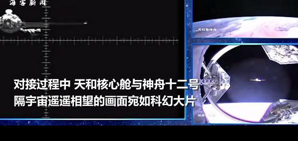 对接过程中,天和核心舱与神舟十二号隔宇宙遥遥 " 相望 " 的画面宛如科幻大片。央视主播朱广权当场赋了句诗:我看青山多妩媚,料青山看我也如是。