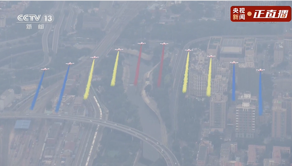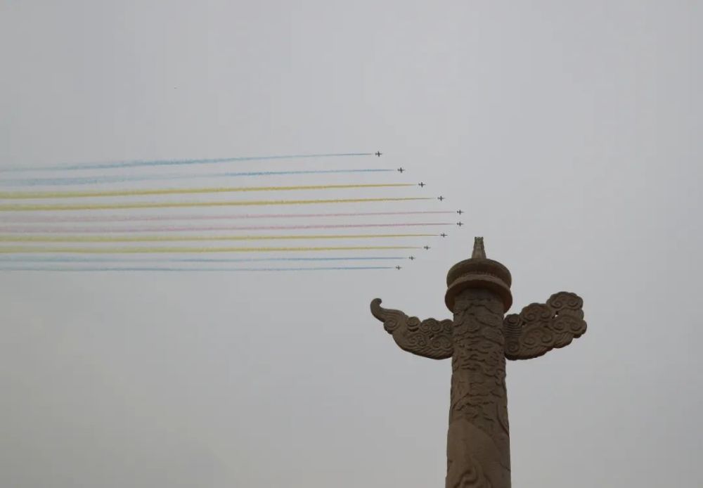 10道彩烟辉映长空庆祝建党百年