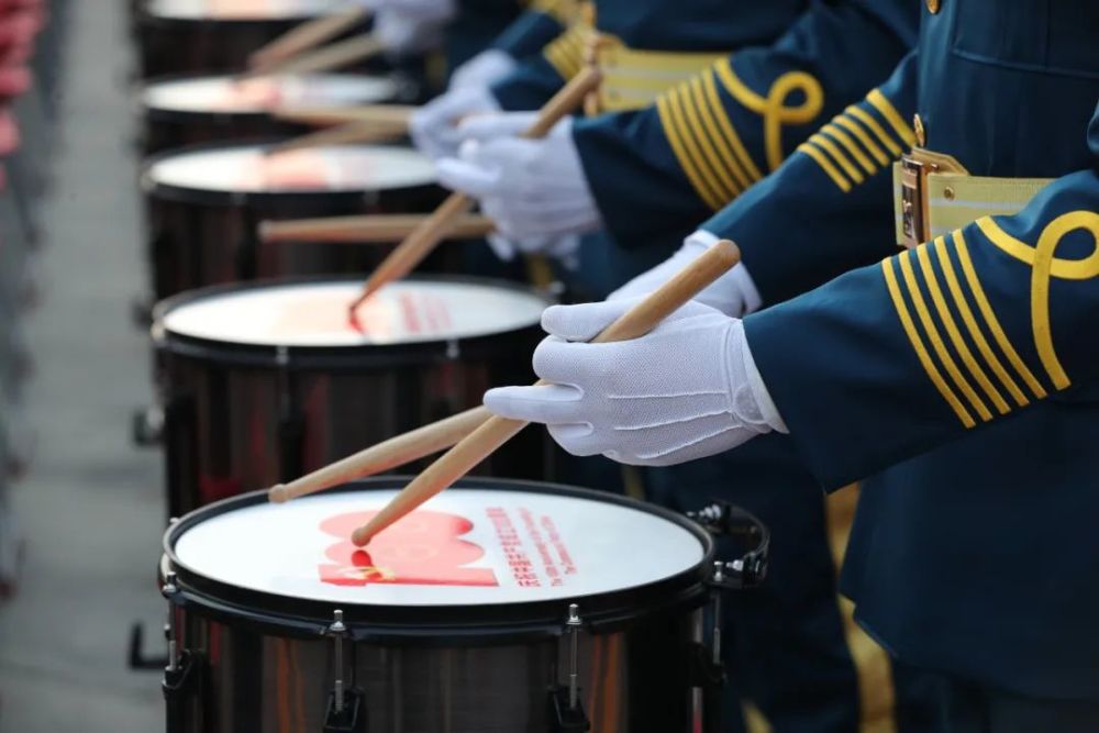 7月1日上午,庆祝中国共产党成立100周年大会在北京天安门广场隆重举行。这是军乐团。