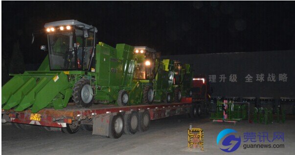 图为奇瑞重工营销公司正在将崭新的玉米机连夜发往全国各地