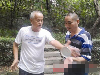 10点半,良叔骑着摩托车,带着一箱道具,来到了公园。“良叔好”,“你好”,两人一见面,首先寒暄了一番。因为汪先生不会说粤语,所以记者也充当了一回“翻译”。