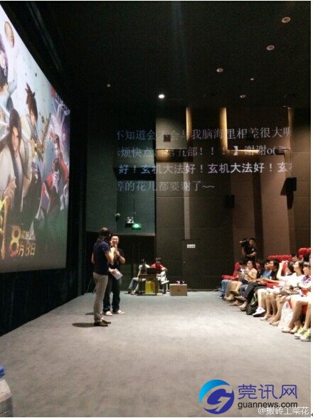 这次《秦时明月》上海点映聚集1400人,共同“弹幕”观影,效果空前。在电影放映时,观众用手机发表的评论会实时在影院两边的墙上滚动,现场充满科技感,上千人不但一起看电影,而且玩电影,纷纷表示很奇妙,玩得很high很过瘾。“从来没这么看过电影啊,没想到在电影院还可以弹幕,那么大的字,可比在电脑上过瘾多了。《秦时明月》电影很好看,玩的也真开心”。
