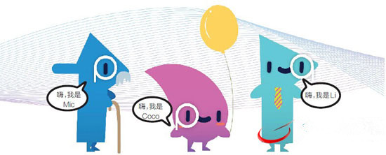 Coco、Mic、Li,它们是可爱的一家人。长得好像汉字基本笔画里的竖、折、点。