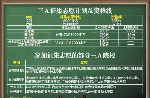 广东三A院校文理科降30分征集志愿