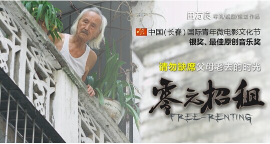 由王肃中、林浩、宋娟、洪诗玥、方鸿、廖语嫣等爱心出演的微电影《零元招租》,自2013年12月28日“常回家看看”写入《中华人民共和国老年人权益保障法》一周年之际,先后在成都、重庆催泪首映以来,主流媒体对它的关注就从未停止过,中央电视台、陕西卫视、北京卫视、湖南经视、重庆卫视、四川电视台、四川日报、安徽商报、蚌埠日报、江淮晨刊、半岛晨报、重庆日报、成都商报、成都晚报、重庆晚报等超过100家媒体对影片进行过新闻报道或全剧播出,国内几乎所有知名视频网同步上线,每天创造着数以万计的点击率,直接或间接辐射受众已逾3亿人次。有网友观看影片后在微博上留言,“这是一部拷问孝心的微电影”,也有网友观后甚至放出“看了不流泪就不是人”的狠话,其实在冷漠肆虐的当下,这种肺腑感言着实让人感动。在数千条网友观后留言的背后,我们越来越认同“金杯银杯不如观众的口碑”这句朴实且永接地气的真理。《零元招租》无论参加多少个微电影节或微电影大赛,也无论获什么奖,其实都不重要,就像导演田万良所说,观众喜欢就是成功。