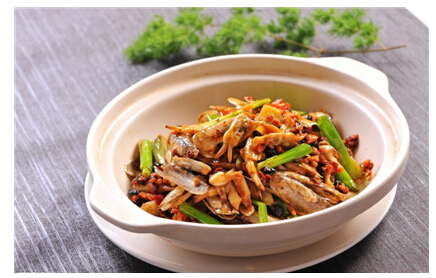 1. 将蛏子放入盐水中浸泡冲洗干净。