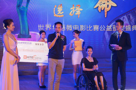 2014年8月18日晚,在中国人民解放军总后勤部金盾影视中心、中国人口福利基金会善基金和中华少年儿童慈善救助基金会的支持下,由中国国际经济技术合作促进会城市发展中心主办,马来西亚白东方有限公司发起的“选择﹒生命”世界华语微电影比赛公益颁奖盛典在北京中央民族乐团音乐厅隆重举行。