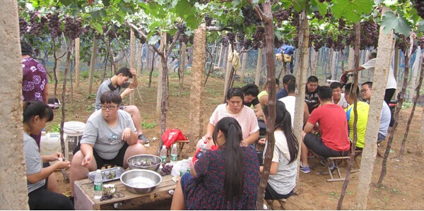 立秋过后,正值青岛特产巨峰葡萄丰收的季节。8月27日英派斯减肥营决定带领营友们到位于青岛城阳惜福镇的宫家村来一次原生态的葡萄采摘活动,好让大家再一次亲近自然,为减肥生活增添乐趣与食趣。想到可以品尝到自己亲手采摘的葡萄,营员们个个兴奋不已、跃跃欲试。