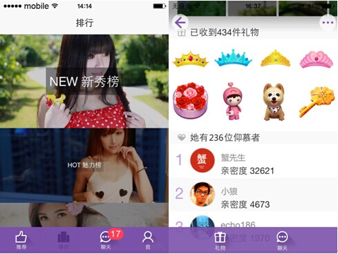 女神来了v1.1版本更加好玩了。全新的升级系统在用户升级时会弹出弹层进行祝贺,男用户一旦地位降级,系统也会发出叹息提示音,让土豪赶紧努力追紧女神。