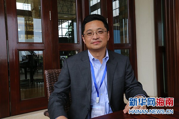 在三亚·财经国际论坛上,佰仟金融副总裁孔令军接受新华网采访。新华网海南频道 喻涛 摄