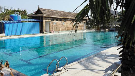 穿过停车场,一条用彩色石砖铺好的小道曲径通幽。小道的入口,有“外来车辆,禁止驶入”的告示牌。记者观察到,农场紧邻东江,小道的两旁绿树成荫。在小道入口,是一个约有几亩大的长方形鱼塘,偌大的鱼塘像一个人工湖。在鱼塘的岸边,有一“别墅”特别显眼。再深入农场,可见小桥流水,有私家游泳池和“湖上餐厅”。
