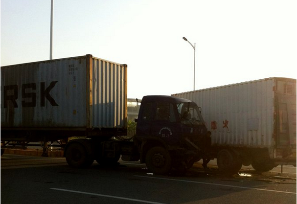东莞道滘厚丫路两货车相撞幸无人员伤亡