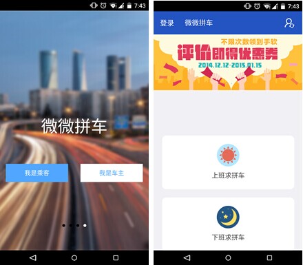 “微微拼车”的职责就是帮你找到同路人。上下班拼车,长途拼车,临时拼车,长期拼车,实名认证,赠送保险,安全靠谱。拼车走起就这么定了!