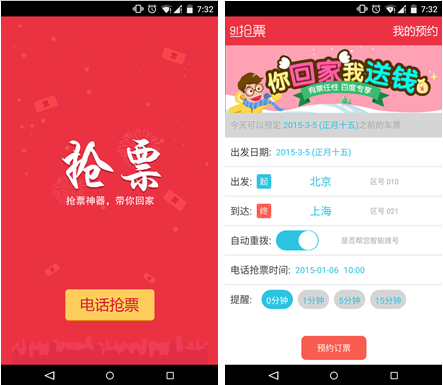 首先,春运回家抢票是头等大事。乘火车、坐飞机、拼车回家,回家的方式有很多种,而移动互联网给我们提供了一个更便捷的购票途径,春运回家让我们从“抢票”开始。