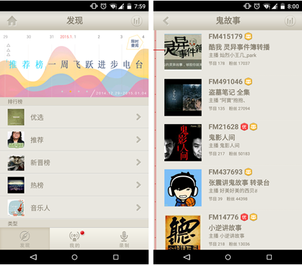 荔枝FM是一个可以在手机上开设个人电台和录制节目的应用软件,从科技广播,到鬼故事,甚至到女生宿舍深夜话题,可以收听几十万个有趣的网络电台。当然荔枝FM支持离线收听节目,准备好几小时的节目,准备上路吧。