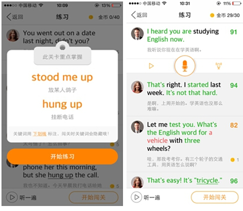 “多说英语”智能口语评分系统逐字逐句为语音进行更加精确的打分,让用户对于发音不到位的地方一目了然。APP中每个关卡都把相应场景下使用频率最高的词汇以及重要语法提炼出来,供用户参考。用户可以根据突出的重点词汇、语法,加强关键的记忆点,学到地道的英语表达。