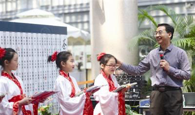 “中国茶,源流长,发神农,起汉唐……”昨日上午在东莞图书馆,8名身着汉服的小学生稚声朗诵《茶典三字经》,获得了市委常委、宣传部部长潘新潮的赞许,并向每位小学生赠送了一套书籍,勉励他们热爱读书、科学读书的同时保护好眼睛。为了迎接今天4.23世界读书日,东莞图书馆举办了“品茶·品书·品生活”系列活动,倡导以书开智、以茶养德的城市新风尚。