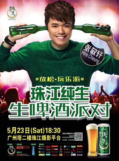 最炫酷的荧光夜跑,最具人气的音乐真人秀、最潮的音乐,这就是2015年的珠江纯生生啤酒派对。作为华南地区最盛大的音乐派对,2015年的珠江纯生生啤酒派对正式确定将在5月23日的广州塔二楼珠江摄影平台拉开首站序幕。珠江纯生代言人张敬轩与多名知名歌手共同唱响15年的生啤酒派对。