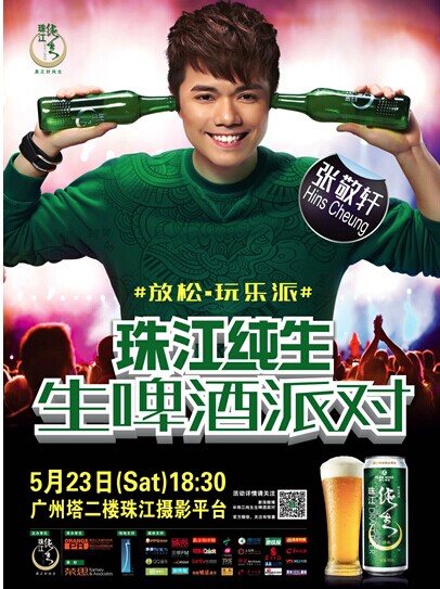 l 拿起珠江纯生啤酒模仿海报上张敬轩动作,拍下图片后分享至珠江纯生生啤酒派对微信号;