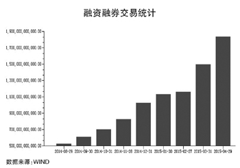 而从推动本轮股市上涨的核心因素之一——杠杆资金的进场速度来看,投资者做多的情绪依然十分强烈。WIND统计数据显示,截至4月29日,沪深两市的融资融券余额已经达到了1.83万亿元,其中融资余额达1.825万亿元。2014年年底,沪深两市的融资融券余额仅为1.13万亿元。这意味着,仅仅四个月的时间,沪深两市的杠杆资金就增加了7000亿元,而且基本上是融资买入。
