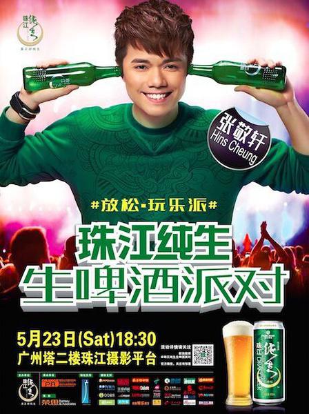 香港知名歌手张敬轩也献出自己的导师处女秀,成为珠江纯生生啤酒派对广州站的“玩乐国王”。