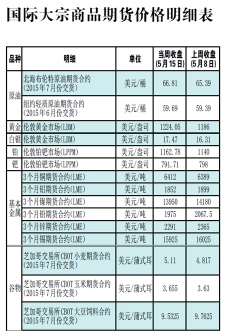 国际大宗商品期货价格明细表(2015年5月18) 2015-05-18 11:23:36 莞讯网 国际大宗商品期货价格明细表(2015年5月18) (来源:经济参考报) 上一篇:法国开云集团在美起诉阿里巴巴卖假货 下一篇:罗家良::东盟共同体建设接近完成 返回首页