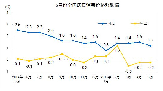2015年5月全国居民消费价格总水平同比涨1.2%