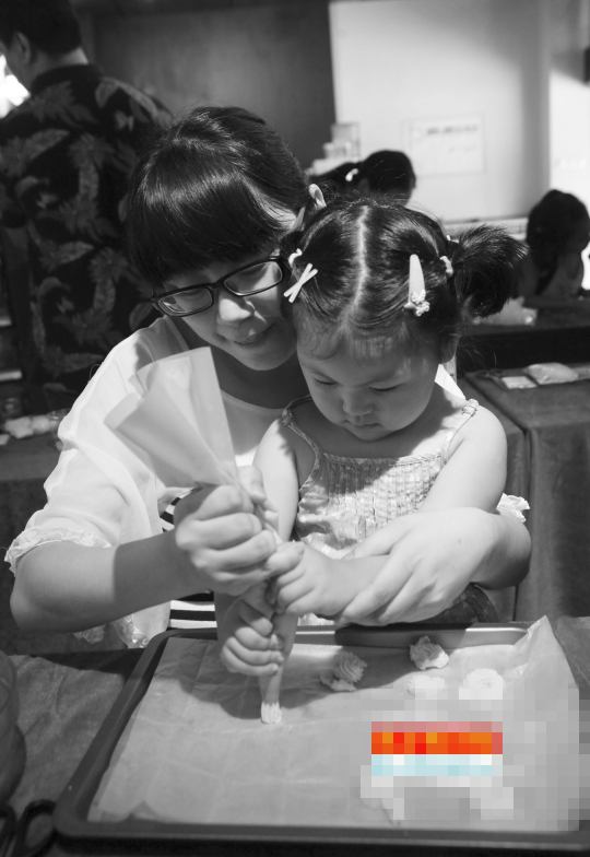 “上好”便利店里举办的烘焙体验课,吸引了许多家长和孩子。刘媚/摄