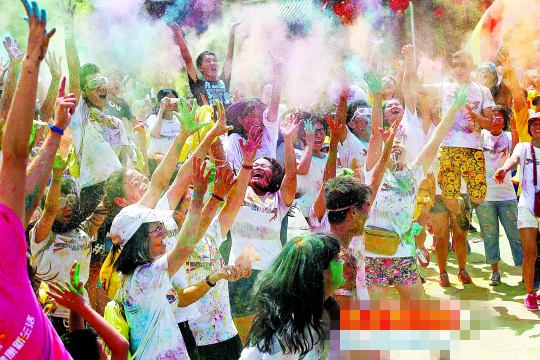 徒脚奔跑已然满足不了这个全民皆“跑团”的时代,席卷全球的彩跑才是跑民们最酷炫的狂欢。昨天上午,彩色跑活动在黄旗山公园鸣枪,1200名选手组成的跑团狂欢开跑,跑团以年轻人居多,大伙在挥汗如雨中,一路以泼粉染色肉搏烈日。