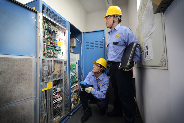 西子奥的斯维保人员对电梯进行“体检” (摄影/宋绍彩)