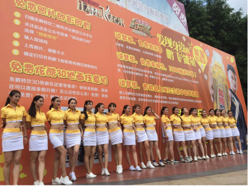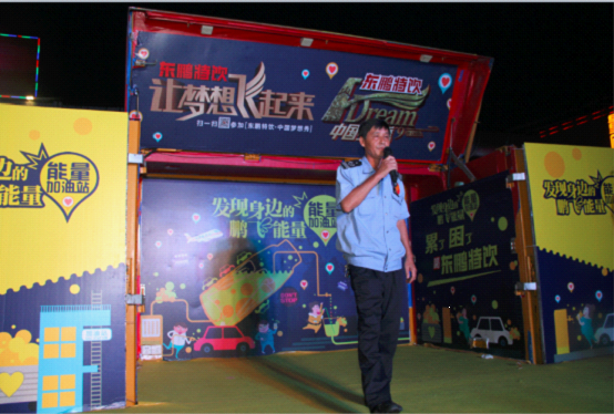 2015年6月14日,东鹏特饮结合《中国梦想秀》,在广州白云区东平文化广场通过有趣的线上线下互动体验活动,让每一个人迈出追求梦想的脚步,也是首个以LBS+O2O形式让追梦人与梦想舞台零距离拥抱的互动体验。活动现场更是聚集了20名能够反手摸肚脐的能量宝贝,现场观众可以与任何一名能量宝贝进行互动小游戏,还能抽取iPhone、小米手机等大奖!