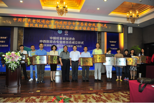 同时为云南健之佳连锁健康药房有限公司、重庆 和平药房连锁有限责任公司、四川德仁堂药业同仁堂 、河北神威大药房连锁有限公司、山西荣华大药房连锁有限公司 、常州市恒泰医药连锁有限公司 、南京医药合肥大药房连锁有限公司 、南京金陵大药房有限公司 、苏州雷允上国药连锁总店有限公司 、四川华逸医药责任有限公司、广州东兴堂大药房连锁有限公司颁发中国抗衰老促进会会员单位牌匾,授权开展“抗衰防病”公益活动。活动旨在提升全民抗衰防病 的自我意识,构建健康延龄社会。