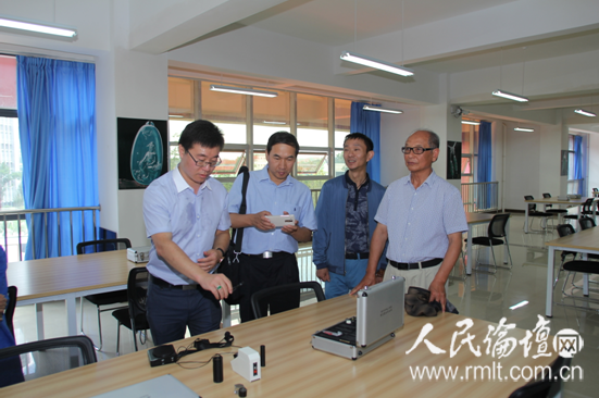 云南乾兴翠商贸有限公司副总经理卢亮带专家、领导介绍参观实训教室并讲解说明