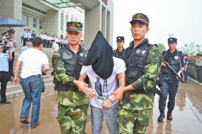 下午6时,当犯罪嫌疑人刘某被押回汝州市公安局时,天空下起了大雨。