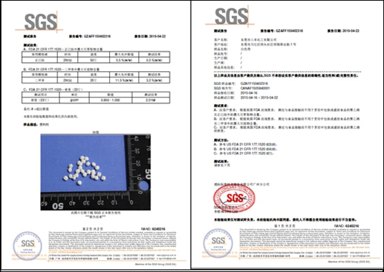 (白色母粒SGS检测FDA食品接触许可认证报告)
