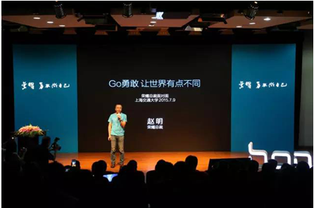 【2015年7月9日,上海】荣耀总裁赵明再度回到了母校——上海交通大学,与学弟学妹分享17年在不同国家、不同岗位的职场行动力,以及荣耀的创新行动力,同时倡导中国的高科技企业在全球竞争中,需要属于自己的科技自信和文化自信。