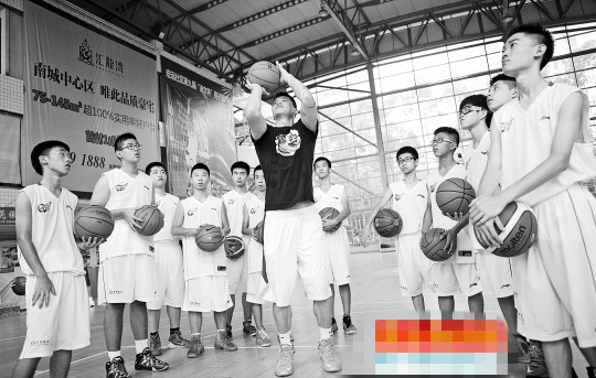 要问生活在篮球之乡有啥好处?看球赛、看篮球明星外,最重要是有机会获得篮球明星手把手地传授经验。或许一个点拨,你家的孩子就有可能成为下一个篮球明星。昨日上午,宏远金丰体育馆,2015年东莞银行篮球夏令营正式开营。本次夏令营共分为7个营期,每期5天进行,朱芳雨、王仕鹏、陈江华、任俊飞、董瀚麟等国内一线队员将轮流上阵,通过专业训练,帮助160多名学员打基础,提升球技。昨日朱芳雨为青少年们传授球技。(来源:南方网)