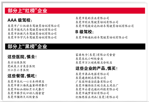 2015东莞第一期企业诚信红黑榜:44家次企业上黑榜