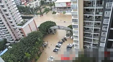 昨天,常平一住宅小区水浸严重,居民调侃“咱们这是住上海景房了”。