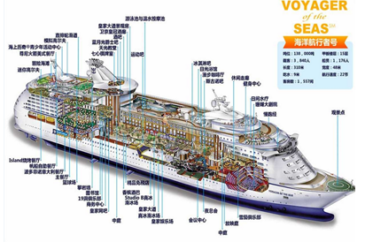 海洋航行者号设计新颖,设施齐全且富有创意,10万吨以上的容积,这意味着邮轮内能装下你意想不到的内容,比如像酒店一样的美食餐馆,如同购物城般的免税购物大道和能上演舞台剧的双层豪华大剧院。你会发现,如果用“船”这个词都有可能侮辱了它,它更像一座童话世界里的移动城堡,一个海上的王国。