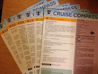 登上邮轮,离开陆地的旅途终于要开始了,有木有点小激动呢。来到房间,你会发现服务人员早已为你准备了一份每日娱乐活动细单,各种演出活动都在上面,不知道怎么玩的朋友可以参照此单简单规划一下。