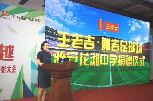 活动当天,四川省雅安市人民政府副秘书长李蓉、雅安市教育局副局长姜建平、雅安市荥经县花滩中学校长姜涛、广州王老吉大健康产业有限公司董事长陈矛等领导出席了活动,在王老吉雅安生产基地共同见证了首个“王老吉.雅吉足球场”的诞生。