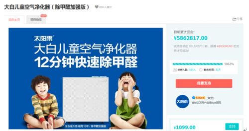 太阳雨大白儿童空气净化器众筹3天突破500万