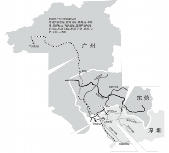 环评报告书中表示,项目与穗莞深南段在新塘衔接,形成一条穗莞深城际客运主轴,形成广州-深圳之间又一便捷走廊。