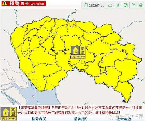 东莞发布8月份首个高温黄色预警信号