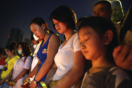 天津滨海新区爆炸事故已造成50人死亡 2015-08-14 09:58:47 莞讯网 8月13日,在天津泰达第二小学安置点,市民为爆炸事故死难者祈福。 才扬/摄 天津滨海新区爆炸事故已造成50人死亡 截至13日18时,危险品爆炸事故已造成50人死亡,其中包括17名消防战士,另有701人住院治疗,其中重症伤员70余人。另据天津港集团公司报告,尚有数十人无法取得联系,目前正在积极搜救中。(记者 才扬)(来源: 经济参考报) 上一篇:中国7月财新制造业PMI初值为48.2 下一篇:李克强赴天津重大火灾爆炸事故现场 返回首页